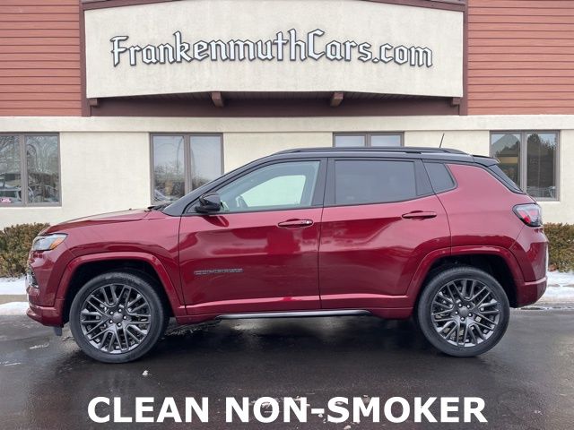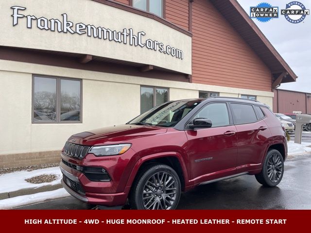 To get your free CARFAX vehicle history report click here: www.frankenmuthcars.net, ** Alloy Wheels / Premium Wheels, ** Apple CarPlay/Android Auto, ** Backup Camera, ** Cruise Control, ** Heated Seats, ** Heated Steering Wheel, ** Keyless Entry, ** Keyless Start, ** Panoramic Roof / Sunroof, ** Remote Start, Compass High Altitude 4WD, 2.4L I4, 4WD, Velvet Red Pearlcoat, Black w/Leather Trimmed Bucket Seats, 10.1" Touchscreen Display, 4G LTE Wi-Fi Hot Spot, Alexa Built-In, Alloy wheels, Auto High Beam Headlamp Control, Black Headliner, Body Color Door Claddings, Body Color Exterior Sill Moldings, Body Color Fascias, Body Color Wheel Flares, Cluster 10.25" TFT Color Display, Connected Travel & Traffic Services, Disassociated Touchscreen Display, For Details, Visit DriveUconnect.com, For More Info, Call 800-643-2112, Front Bucket Seats, Global Telematics Box Module (TBM), Gloss Black Exterior Mirrors, Gloss Black Surround/Neutral Gray Rings, GPS Navigation, Gray Day Light Opening Moldings, HD Radio, Heated front seats, High Altitude Package, Integrated Voice Command w/Bluetooth, Leather Trimmed Bucket Seats, LED Low/Highbeam Projector Headlamps, Liquid Chrome/Chainmail Hydro Accent, Neutral Gray Exterior Accents, Neutral Gray Exterior Badging, Neutral Gray Side Roof Rails, Power Front/Fixed Rear Full Sunroof, Premium Alpine Speaker System, Premium LED Fog Lamps, Premium Taillamps, Quick Order Package 2GF High Altitude, Radio: Uconnect 5 Nav w/10.1" Display, SiriusXM Guardian - Included Trial (B), SiriusXM Radio Service, SiriusXM Satellite Radio, SiriusXM w/360L, Tungsten Accent Stitching, Wheels: 19" x 7.5" Aluminum Painted.