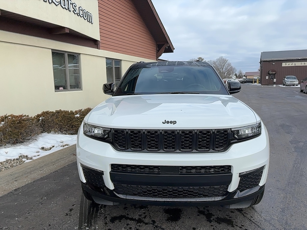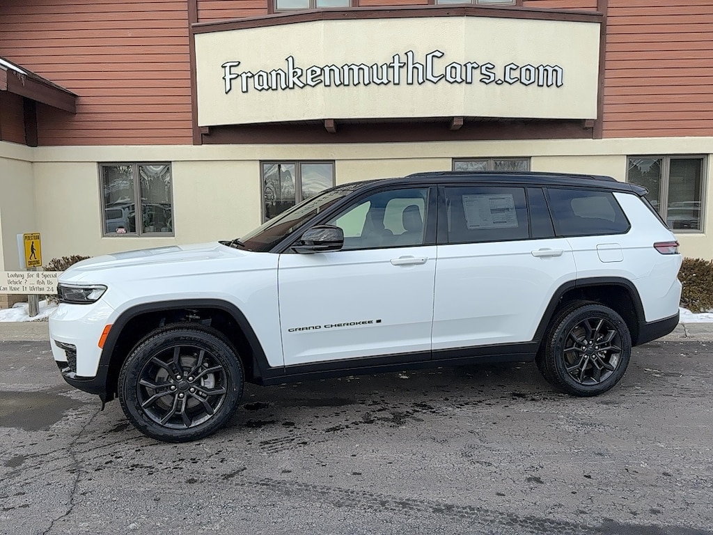 Dealer Demo Vehicle, Grand Cherokee L Limited, 4D Sport Utility, 3.6L V6 24V VVT, 8-Speed Automatic, 4WD, Bright White Clearcoat, Global Black Artificial Leather, Capri Leatherette Seats, Garage door transmitter, Heated door mirrors, Heated front seats, Heated rear seats, Heated steering wheel, Memory seat, Navigation System, ParkView Rear Back-Up Camera, Power door mirrors, Power driver seat, Power Liftgate, Power passenger seat, Radio: Uconnect 5 Nav with 10.1" Display, Remote keyless entry, Steering wheel mounted audio controls. Bright White Clearcoat 2025 Jeep Grand Cherokee L Limited 4D Sport Utility 4WD 8-Speed Automatic 3.6L V6 24V VVT