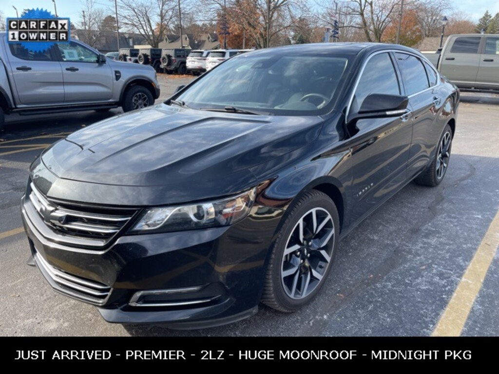 To get your free CARFAX vehicle history report click here: www.frankenmuthcars.net, ** Backup Camera, ** Cooled Seats, ** Cruise Control, ** Heated Seats, ** Leather Seats, ** Panoramic Roof / Sunroof, ** Remote Start, ** Steering Wheel Controls, Impala Premier 2LZ, 3.6L V6 DI DOHC, Jet Black w/Leather Seat Trim, 120-Volt Power Outlet, Advanced Technology Package, Alloy wheels, Auto-Dimming Inside Rear-View Mirror, Body-Color Surround Grille, Bose Centerpoint Surround Sound Premium System, Carpeted Trunk Mat, Driver Memory, Enhanced Convenience Package, Front Black Bowtie, Heated Steering Wheel, Midnight Edition Appearance Package, Outside Heated Power-Adjustable Mirrors, Pedal Cover Set, Power Tilt & Telescoping Steering Column, Preferred Equipment Group 2LZ, Premium Carpeted Front & Rear Floor Mats, Rear Black Bowtie, Rear Spoiler, Universal Home Remote, Ventilated Driver Seat, Ventilated Front Passenger Seat, Wheels: 19" Special Midnight Edition, Wireless Charging For Devices.
