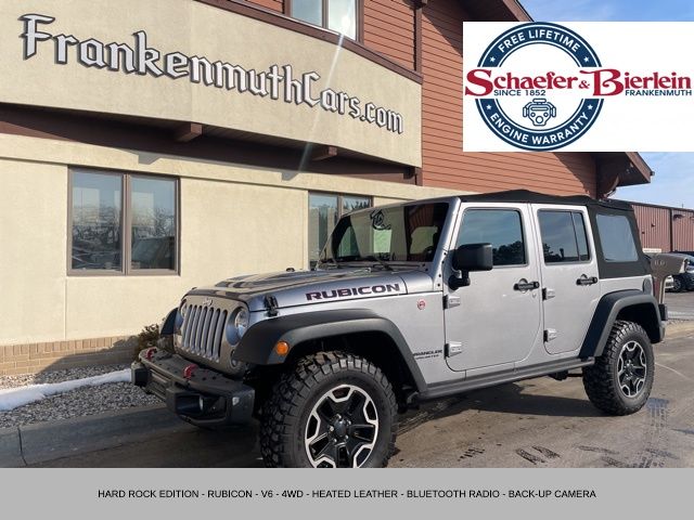 This 2016 Jeep Wrangler Unlimited Rubicon HARD ROCK is a true off-road warrior, ready to take on any adventure. With its powerful 3.6L V6 engine, 4-wheel drive capabilities, and rugged Rubicon suspension, this Jeep is built to conquer the toughest terrain. The exterior features a bold, distinctive style with a silver finish, power dome hood, and premium black soft top, while the interior offers premium amenities like heated leather seats, a 6.5" touchscreen display with navigation, and a premium audio system.