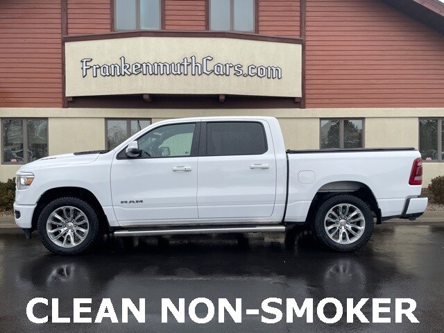 CARFAX One-Owner. 2023 Ram 1500 HEMI 5.7L V8 Multi Displacement VVT eTorque Bright White Clearcoat Laramie SPORT PKG 4D Crew Cab 4WD 8-Speed Automatic