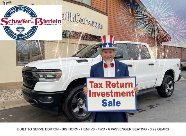 To get your free CARFAX vehicle history report click here: www.frankenmuthcars.net, ** Alloy Wheels / Premium Wheels, ** Apple CarPlay/Android Auto, ** Backup Camera, ** Bluetooth, Hands Free, ** Cruise Control, ** Heated Seats, ** Heated Steering Wheel, ** Keyless Entry, ** Keyless Start, 1500 Big Horn/Lone Star BUILT - TO - SERVE, HEMI 5.7L V8 Multi Displacement VVT eTorque, 4WD, Bright White Clearcoat, 115V Auxiliary Power Outlet, 2nd Row In Floor Storage Bins, 3.21 Rear Axle Ratio, 400W Inverter, 4G LTE Wi-Fi Hot Spot, 8.4" Touchscreen Display, 9 Amplified Speakers w/Subwoofer, Air Conditioning ATC w/Dual Zone Control, Alloy wheels, Apple CarPlay, Auto-Dimming Exterior Driver Mirror, Auto-Dimming Rear-View Mirror, Big Horn Badge, Big Horn Level 2 Equipment Group (DISC), Black Exterior Mirrors, Black Premium Power Mirrors, Bluetooth Handsfree Phone & Audio, Class IV Receiver Hitch, Cluster 7.0" TFT Color Display, Connectivity - US/Canada, Convex Wide-Angle Exterior Mirror Insert, E-Locker Rear Axle, Electric Shift-On-Demand Transfer Case, Exterior Mirrors Courtesy Lamps, Exterior Mirrors w/Heating Element, Exterior Mirrors w/Supplemental Signals, For Details, Visit DriveUconnect.com, For More Info, Call 800-643-2112, Front Fog Lamps, Glove Box Lamp, Google Android Auto, GPS Antenna Input, Heated Front Seats, Heated Steering Wheel, Integrated Center Stack Radio, LED Footwell Lighting, Media Hub w/2 Charge Only USBs, ParkSense Front/Rear Park Assist w/Stop, ParkView Rear Back-Up Camera, Power 2-Way Driver Lumbar Adjust, Power 8-Way Driver Seat, Power Adjustable Pedals, Power-Folding Mirrors, Quick Order Package 27Z Big Horn, Radio: Uconnect 5 W w/8.4" Display, Rear Dome w/On/Off Switch Lamp, Rear Power Sliding Window, Rear Window Defroster, Remote Start System, Security Alarm, SiriusXM Satellite Radio, Sun Visors w/Illuminated Vanity Mirrors, Universal Garage Door Opener, USB Host Flip, Wheels: 20" x 9.0" Premium Paint/Polished.