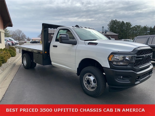 FREE FLATBED UPFIT! YOU ARE ONLY PAYING FOR THE CHASSIS! 3500 Tradesman 167.5 WB, 2D Standard Cab, 6.4L V8, 8-Speed Automatic, 4WD, Bright White Clearcoat, Diesel Gray/Black Vinyl, 4G LTE Wi-Fi Hot Spot, 8.4" Touchscreen Display, All R1 Low Radios, All Radio-Equipped Vehicles, Apple CarPlay, Black Exterior Mirrors, Black Exterior Truck Badging, Bluetooth Handsfree Phone & Audio, Connectivity - US/Canada, Door Sill Scuff Pads, Electrical Accessory Group, Exterior Mirrors Courtesy Lamps, Exterior Mirrors w/Heating Element, Exterior Mirrors w/Supplemental Signals, For Details, Visit DriveUconnect.com, For More Info, Call 800-643-2112, Front 1-Touch Down Power Windows, Global Telematics Box Module (TBM), Google Android Auto, GPS Antenna Input, Halogen Quad Headlamps, Heavy Duty Snow Plow Prep Group, Integrated Center Stack Radio, Integrated Voice Command w/Bluetooth, Manual Folding Exterior Mirrors, Manual Telescoping Mirrors, Map/Courtesy Lamp, Matte Black Grille Surround, Mirror Power Heat Fold Telescope Black, Mirror Running Lights, Overhead Console, Overhead Cupholder Lamp, Power Adjust Mirrors, Power-Adjustable Convex Aux Mirrors, Quick Order Package 2GA Tradesman, Radio: Uconnect 5 w/8.4" Display, Rear Dome Lamp, Remote Keyless Entry, SiriusXM Radio Service, SiriusXM Satellite Radio, Speed control, Speed Sensitive Power Locks, Temperature & Compass Gauge, Traction control, Tradesman Level 1 Equipment Group, Upgraded Door Trim Panel, Voltage Monitoring Auto Idle Up System. Bright White Clearcoat 2024 Ram 3500 Tradesman 167.5 WB 2D Standard Cab 4WD 8-Speed Automatic 6.4L V8